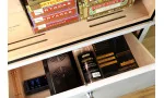 调整柜门 如果雪茄柜放置的位置非常倾斜,这可能意味着柜门不再能正常平齐地关闭。在这种情况下,可以轻松地调整柜门铰链,使柜门适应环境,并重新正确关闭。这样就能确保保湿盒继续发挥最佳功能。