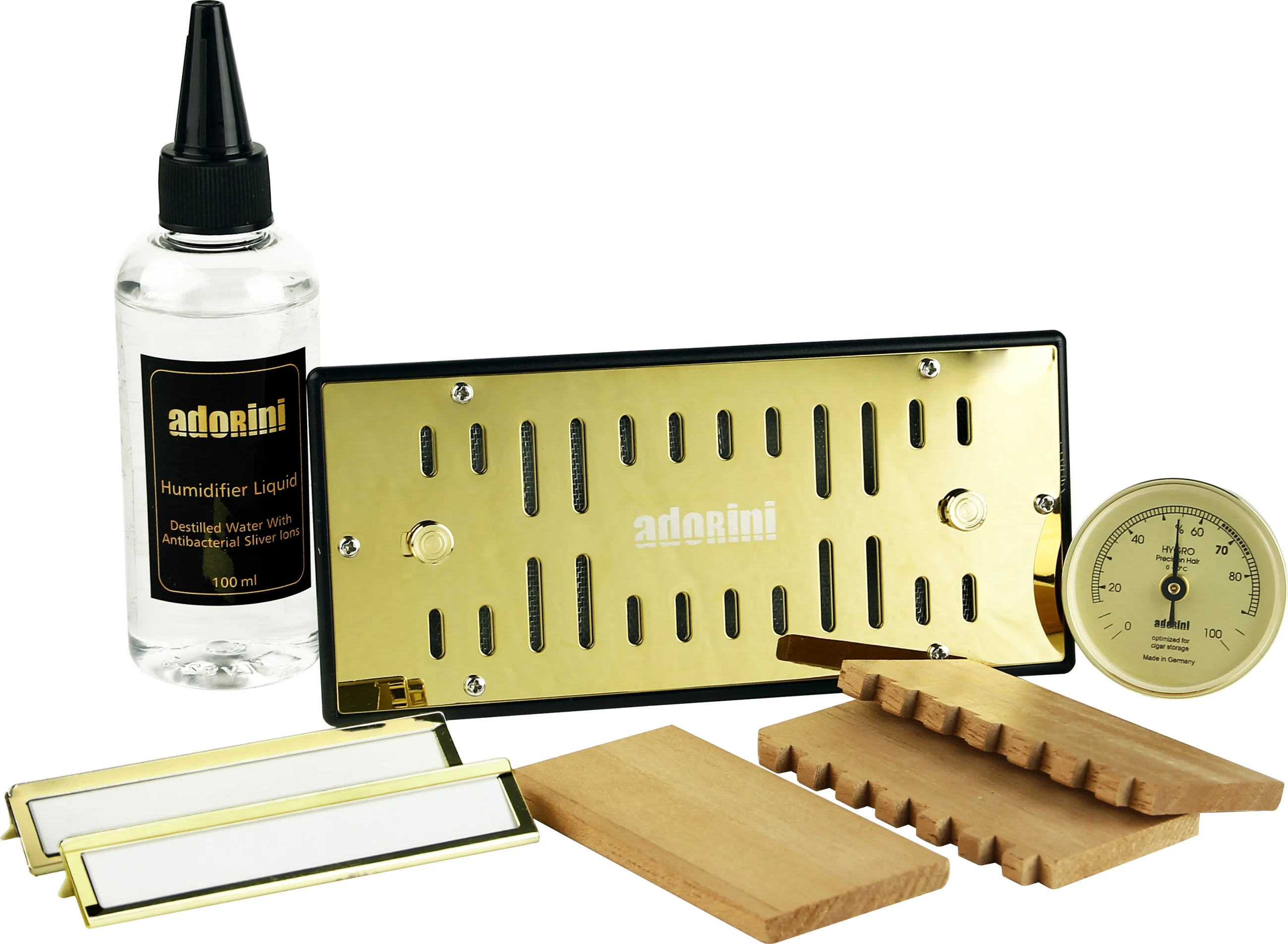 - Gold plated acryl polymer based Adorini Deluxe humidifier with adjustable ventilation openings for an optimum regulation of the humidity level