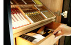 调整柜门 如果雪茄柜放置的位置非常倾斜,这可能意味着柜门不再能正常平齐地关闭。在这种情况下,可以轻松地调整柜门铰链,使柜门适应环境,并重新正确关闭。这样就能确保保湿盒继续发挥最佳功能。