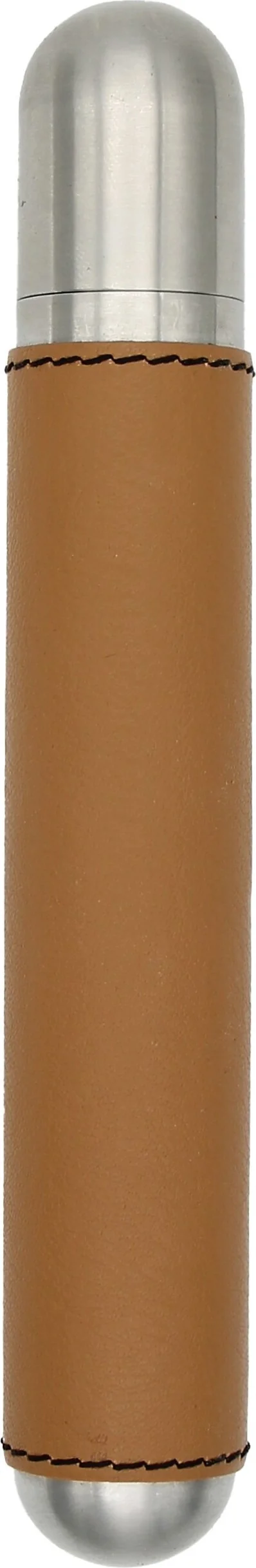 阿多里尼单支雪茄管 - 缎面钢配棕色皮套