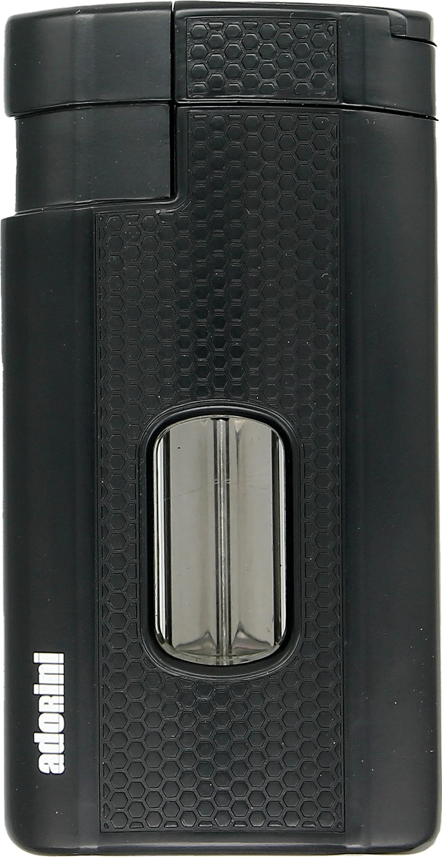 adorini 黑色三火焰喷气式打火机,并集成了V型雪茄剪,其设计、性能和多功能性,会给您留下深刻印象。