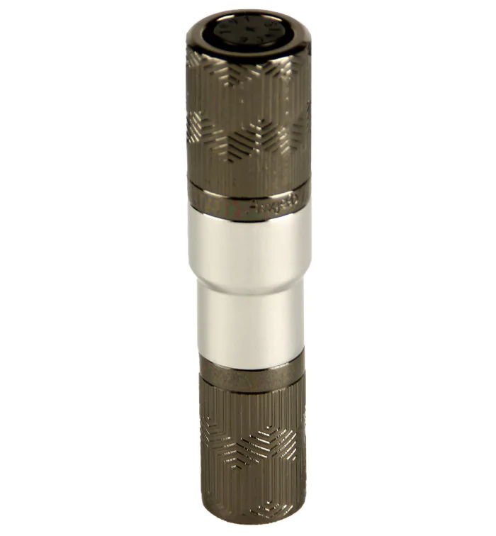 Angelo 雪茄打孔器 2 合 1 将光滑的银色与深灰色相结合,为眼光独到的雪茄爱好者打造了一款时尚配件。深灰色元素具有时尚的几何图案,既增强了视觉吸引力,又在必要的扭转动作中提供了安全的抓握感。
