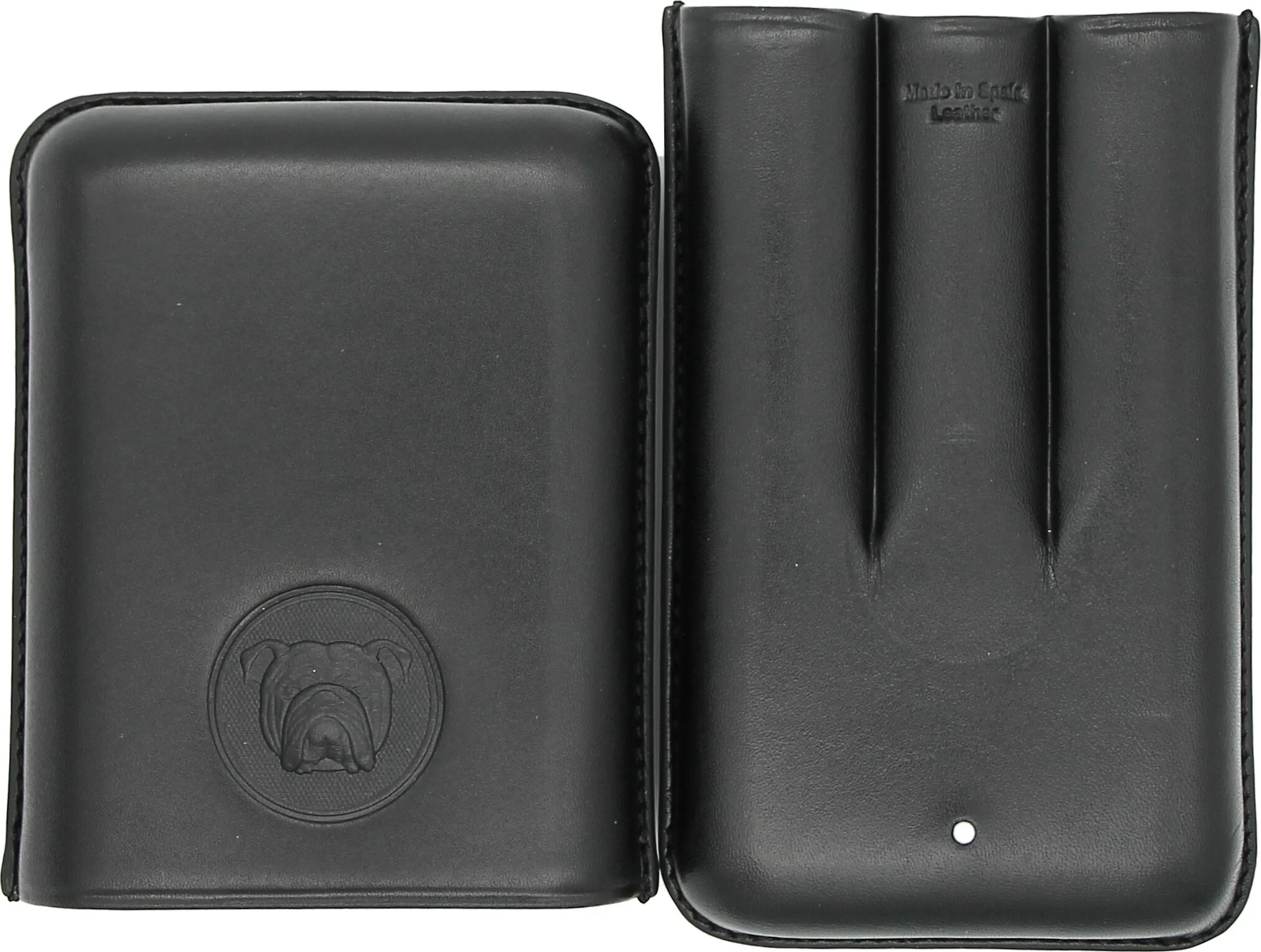 The Bulldog by Dunhill Robusto Cigar Case in black combines elegance and robustness in a high-quality accessory. Crafted from genuine leather and made in Spain, it impresses with classic craftsmanship and a striking design.