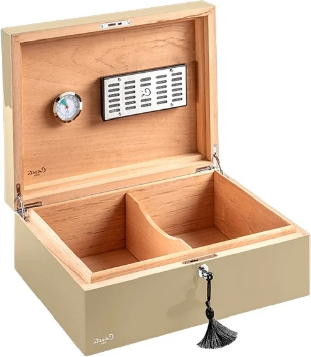 卡沙帝(Caseti)巴黎系列米色雪茄保湿盒是法国品牌卡沙帝(Caseti)推出的一款精致雪茄保湿盒,其高光泽的表面,令人眼前一亮。巴黎系列产品代表着不寻常的色彩,与经典的、常见的木纹贴面雪茄保湿盒相比,更显出众。