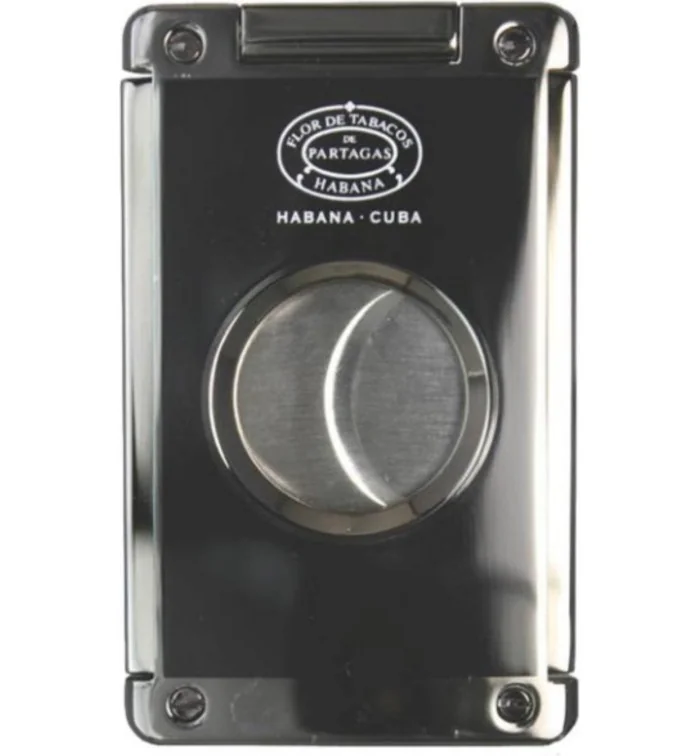雪茄剪采用精致的黑色表面处理,并印有两个标志性的徽标:一面是经典的Partagás字样,另一面是传统的徽章标志,与世界闻名的雪茄盒上的图案如出一辙。