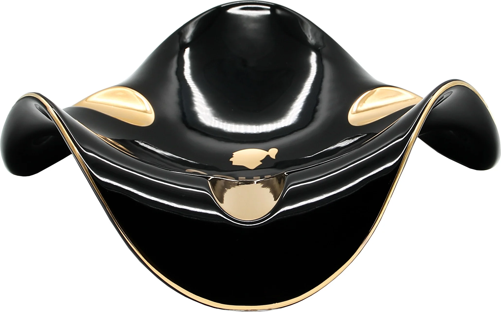 The Cohiba ashtray in black with gold accents is an exceptional accessory from the most renowned Cuban cigar brand, Cohiba. Its curved design lends it a special elegance, making it a true eye-catcher in any setting. Three generously sized cigar rests offer ample space for enjoying cigars in company and combine functionality with aesthetic appeal.