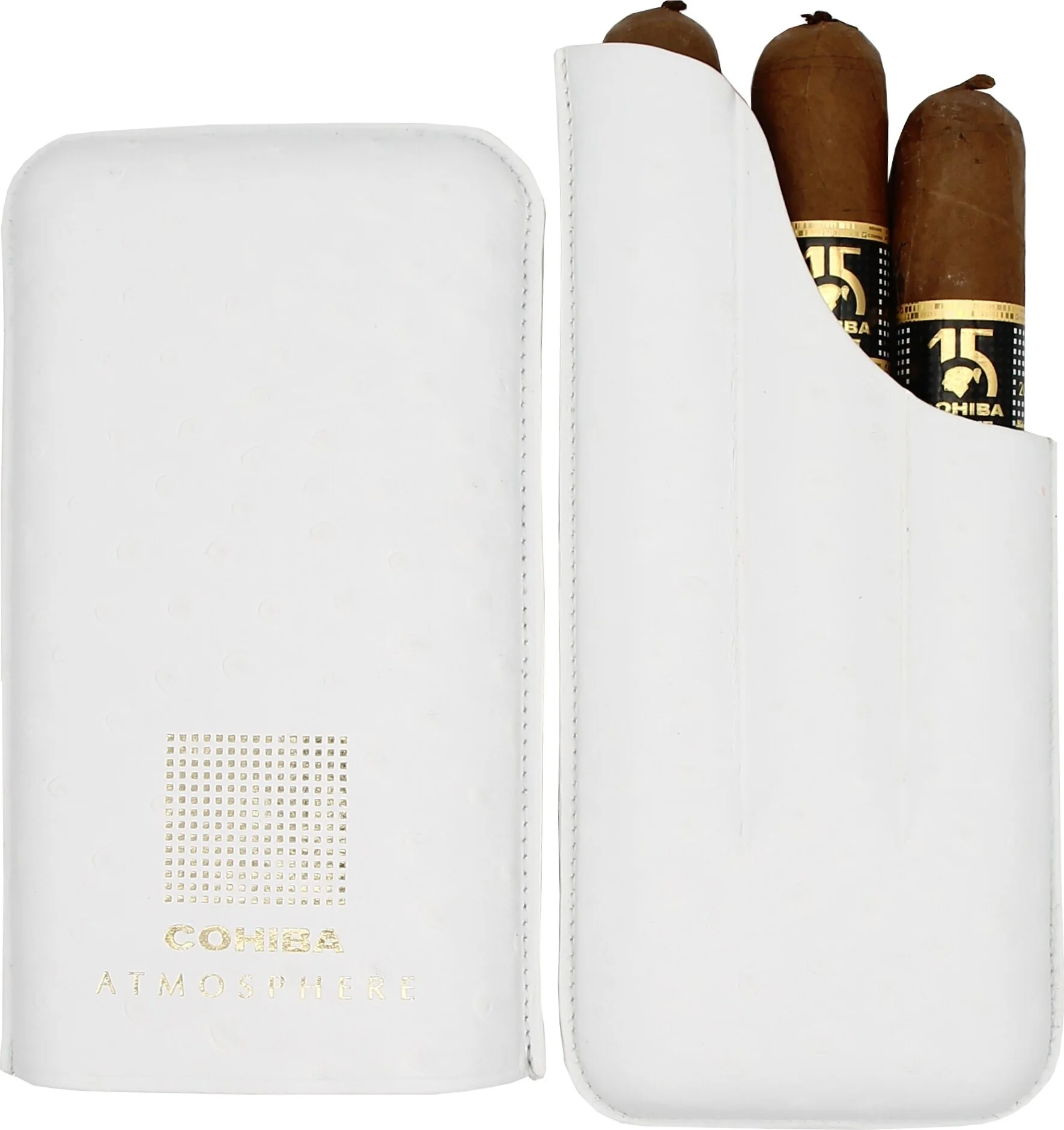On the front, the elegant gold Cohiba Atmosphere logo print ensures instant recognition and lends the case an aura of luxury and authenticity.