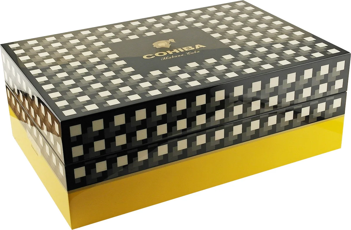 - Signature Cohiba design in black, yellow, and white