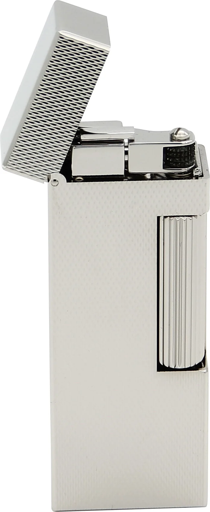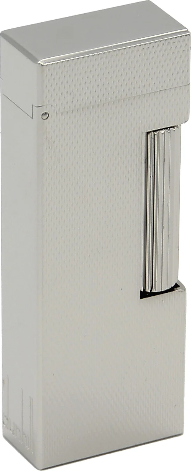The combination of finely patterned surfaces on the front and back and highly polished, smooth sides gives the lighter its elegant, distinctive appearance. The Dunhill brand logo is finely engraved on one side. The ignition is protected from dust and dirt by a cover, which further increases the service life of the mechanism.