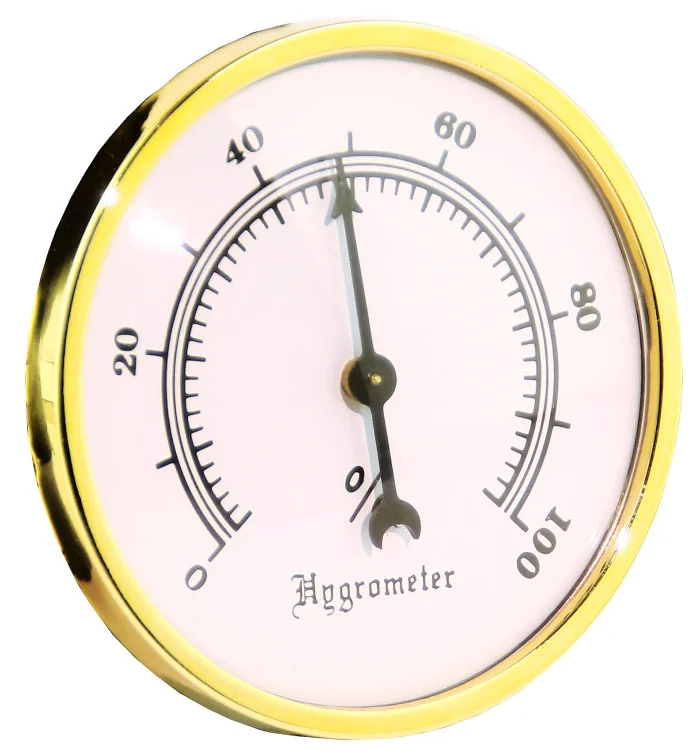 这款迷人的湿度计采用金色外缘,环绕着白色表面和经典的模拟表盘,外观永恒,几乎适用于任何保湿盒。它的直径更大,数字也更容易读取,可以让您更好地跟踪保湿盒中的湿度。