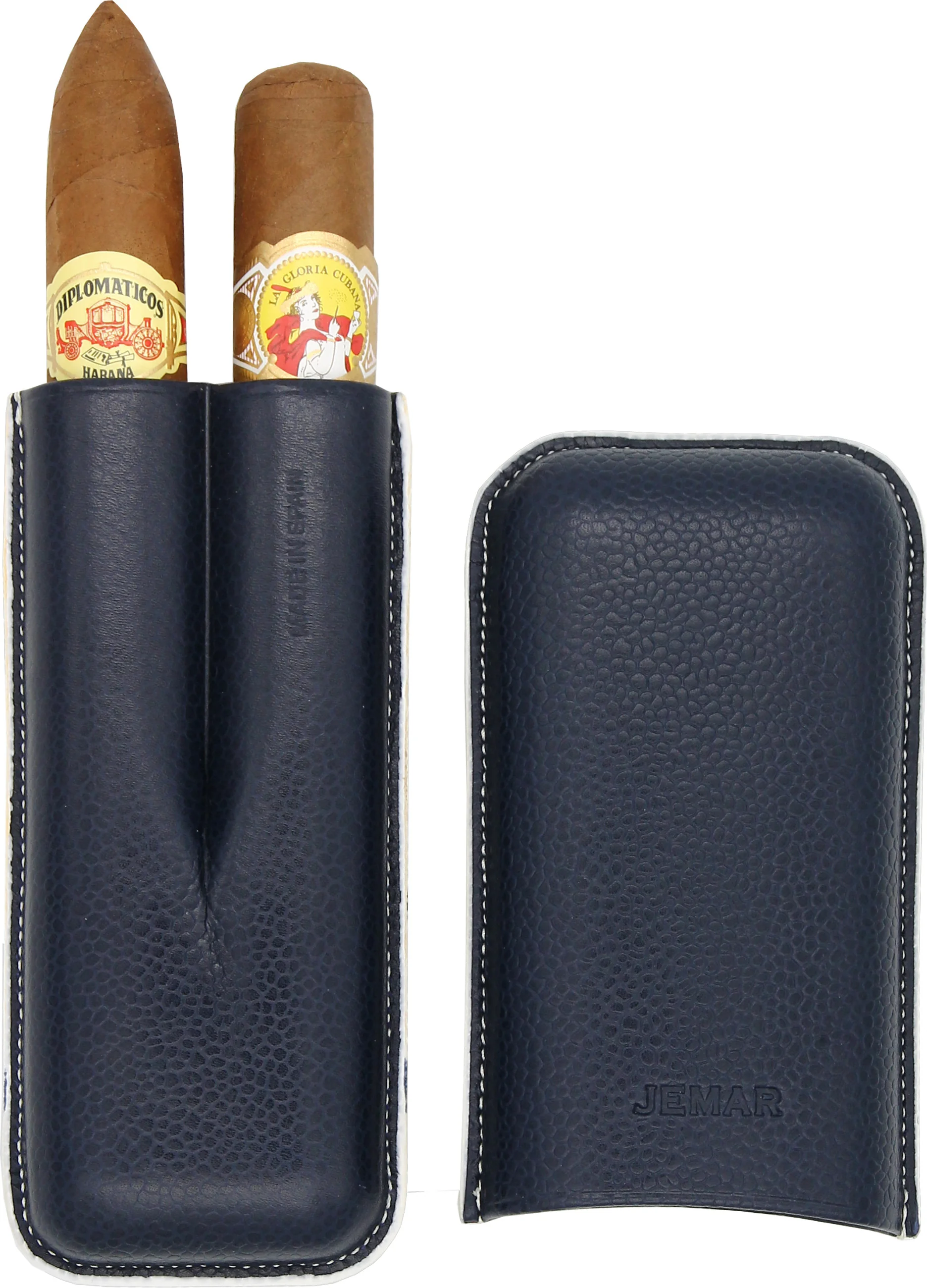 Jemar雪茄皮套盒可装两支雪茄 - 深蓝色464/2
