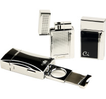 Caseti的压电式打火机系列,提供喷射火焰和柔和火焰两种选择,例如 Caseti Cannes 镀铬打火机。压电点火机制通过石英晶体作为打火装置,免去了更换火石的麻烦。