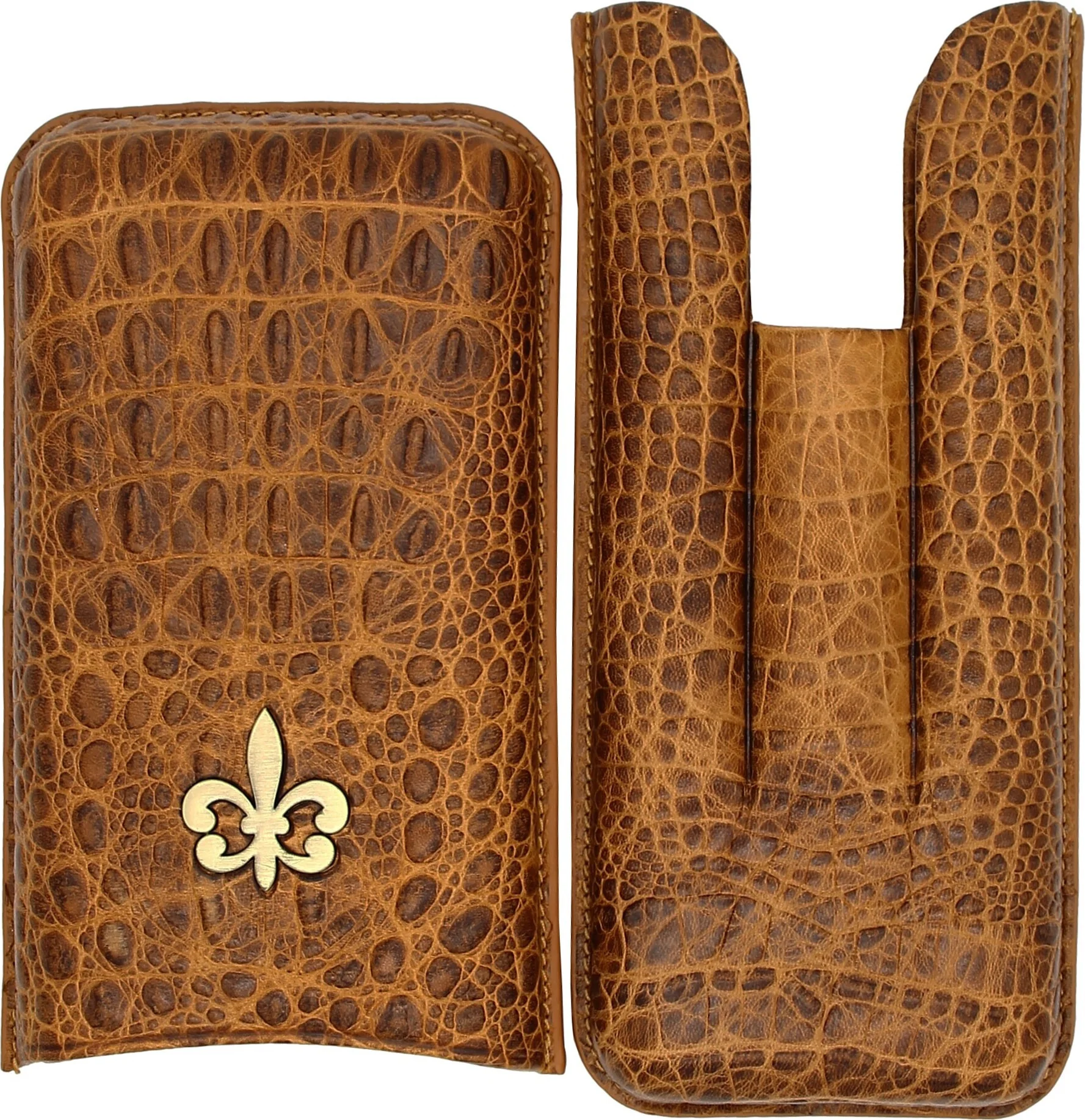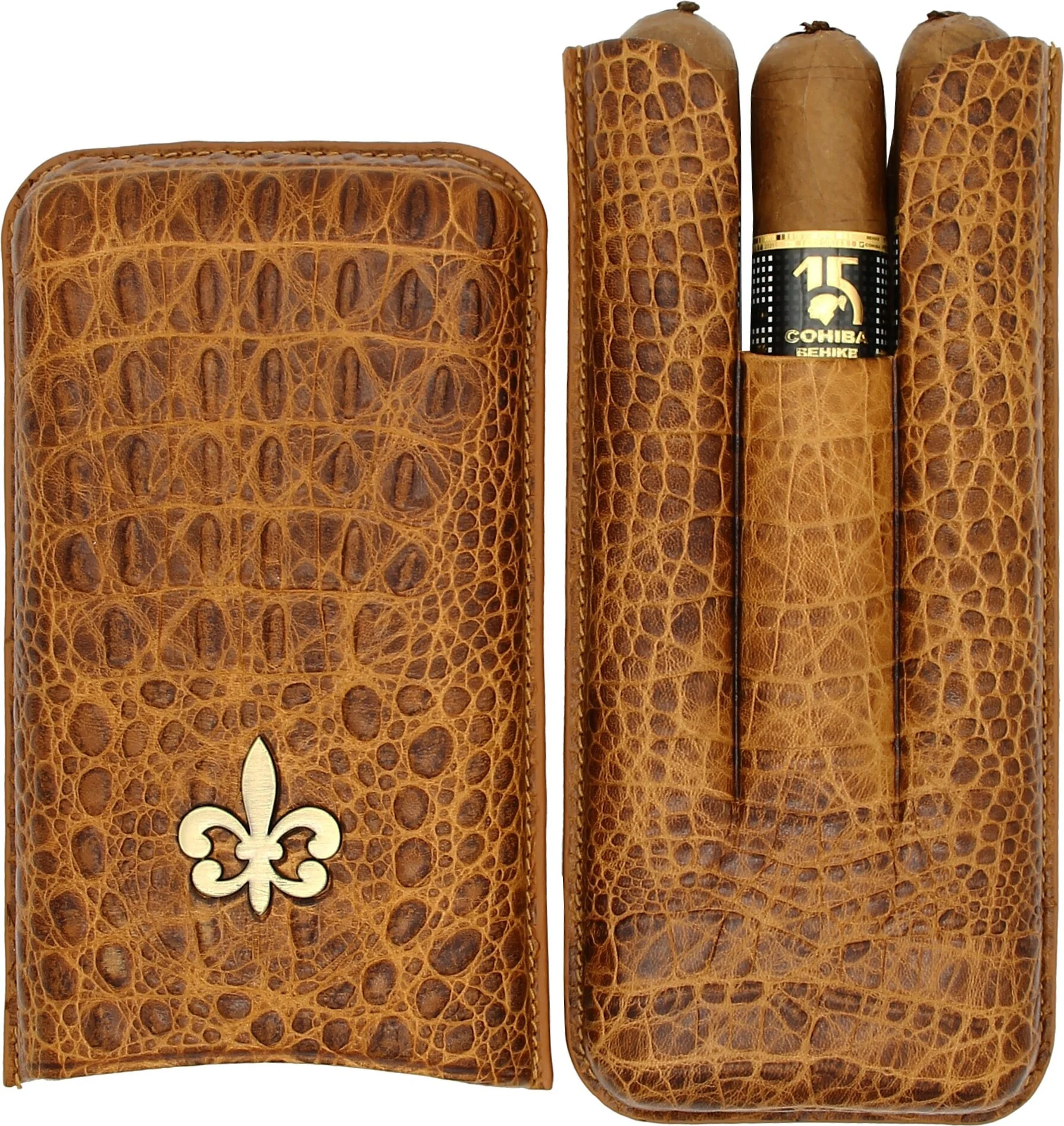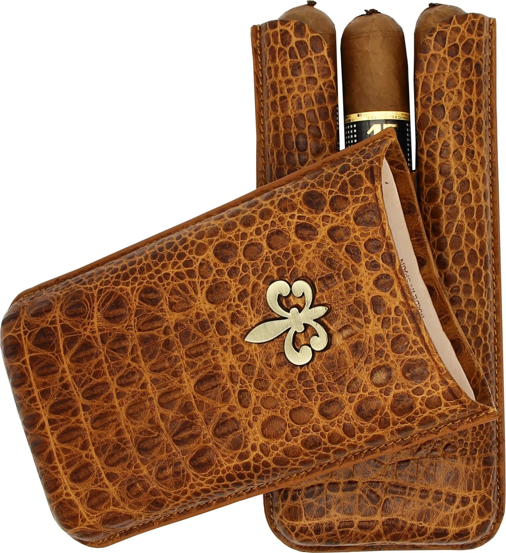 蒙特克里斯托鸢尾花雪茄皮套盒可放置3支雪茄 - 鳄鱼纹棕色