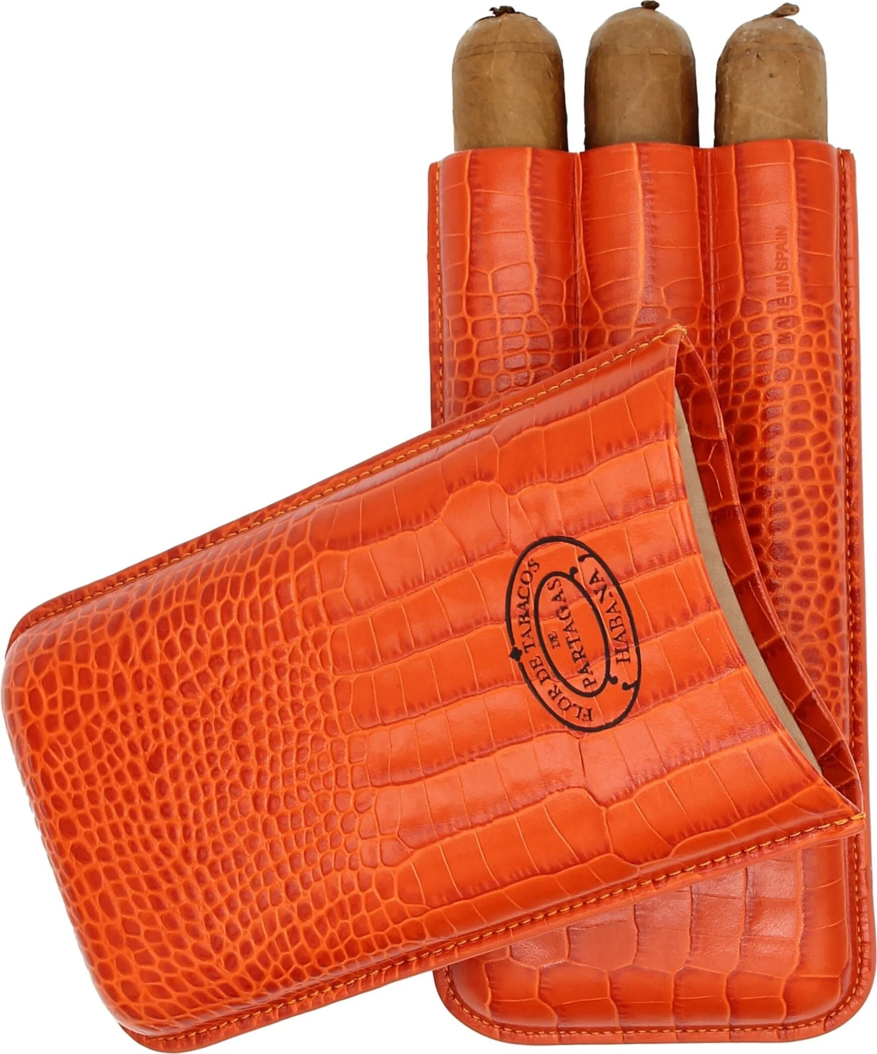 帕特加斯经典雪茄皮套盒可放置3支雪茄 - 橙色