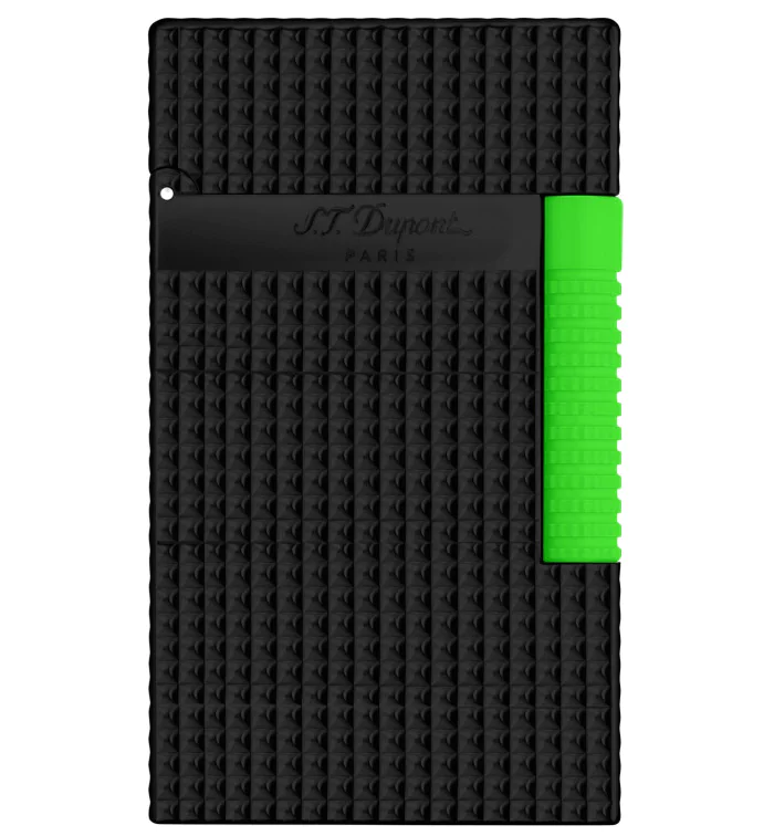 S.T. Dupont 的 Le Grand Fluo 绿色打火机是 Fluo 系列中的佼佼者,旨在为该品牌的经典产品注入现代活力。该系列以鲜艳的荧光色为特色,灵感来自于当前的时尚潮流和创新的汽车设计。这款打火机采用独特的玑镂图案和丝质哑光黑色表面,与大胆的绿色形成现代对比。