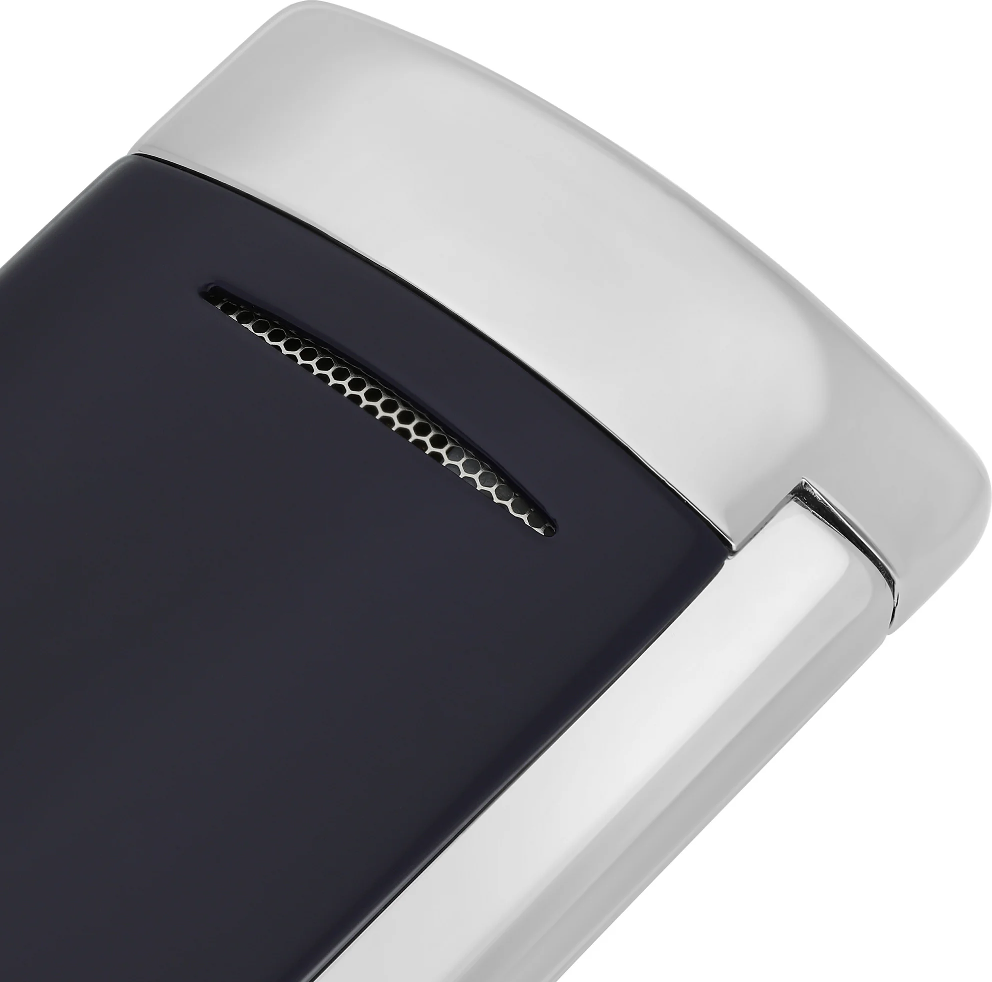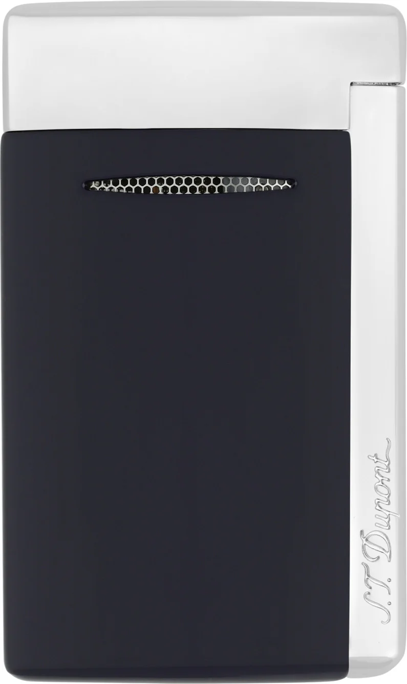 S.T. Dupont(都彭)Minijet系列深蓝色搭配银色元素的打火机,是一款精致且便携的打火机,其强劲的喷射火焰和电动压电点火装置,令人印象深刻。哑光蓝色表面搭配抛光银色元素,使其成为日常使用的时尚配饰。