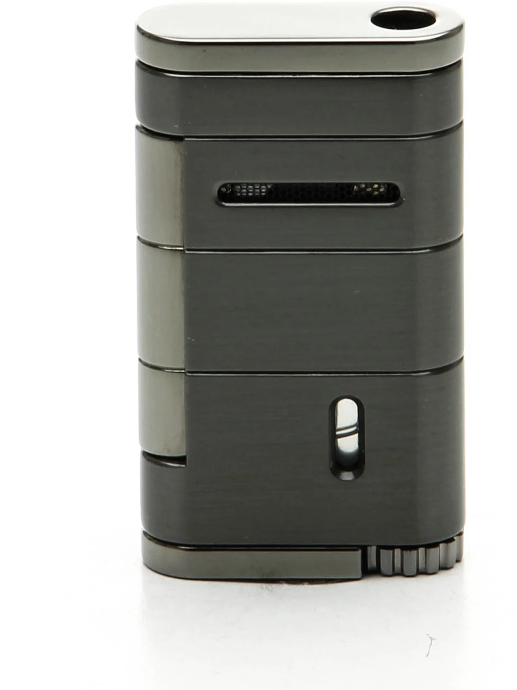Allume的特点是抗风喷射火焰,提供集中的火焰,每次都能准确地点燃你的雪茄。只要按一下侧面安装的点火装置,就能收回一个集成的盖子,并释放出强大的火焰。只需简单地转动一个大的火焰调节轮,调整火焰的大小从未如此简单。